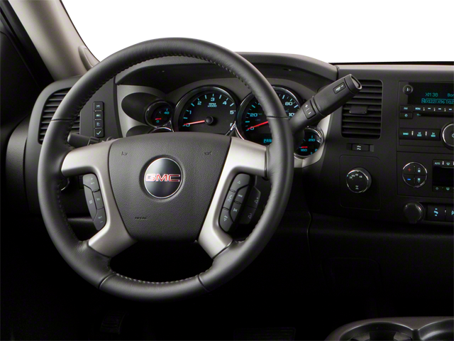 POWER PACK PLUS includes Vortec 5.3L V8 SFI FlexFuel engine, (G80) heavy-duty automatic locking rear differential, (Z82) Trailering Package and (N88) 4 - 17" x 7.5" (43.2 cm x 19.1 cm) 6-lug aluminum wheels, ENGINE, VORTEC 5.3L VARIABLE VALVE TIMING V8 SFI FLEXFUEL WITH ACTIVE FUEL MANAGEMENT, TRAILERING PACKAGE, HEAVY-DUTY includes trailering hitch platform and 2-inch receiver, 7-wire harness (harness includes wires for: park lamps, backup lamps, right turn, left turn, electric brake lead, battery and ground) with independent fused trailering circuits mated to a 7-way sealed connector, wiring harness for after-market trailer brake controller (located in the instrument panel harness) and (KNP) external transmission oil cooler, SEATS, FRONT 40/20/40 SPLIT-BENCH 3-passenger, driver and front passenger manual reclining, center fold-down armrest with storage, lockable storage compartment in seat cushion (includes auxiliary power outlet), adjustable outboard head restraints and storage pockets on Extended and Crew Cab models (STD), TRANSMISSION, 6-SPEED AUTOMATIC, AUDIO SYSTEM, AM/FM STEREO WITH MP3 COMPATIBLE CD PLAYER seek-and-scan, digital clock, auto-tone control, Radio Data System (RDS), speed-compensated volume and TheftLock (STD). GMC SLE with Pure Silver Metallic exterior and Ebony interior features a 8 Cylinder Engine with 302 HP at 5600 RPM*.