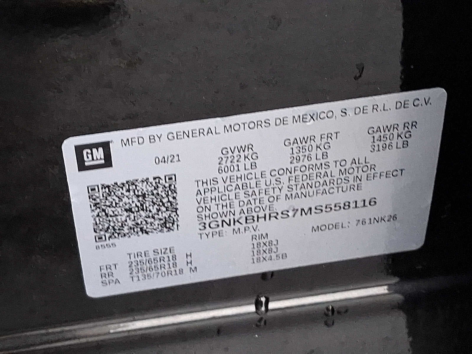 3GNKBHRS7MS558116