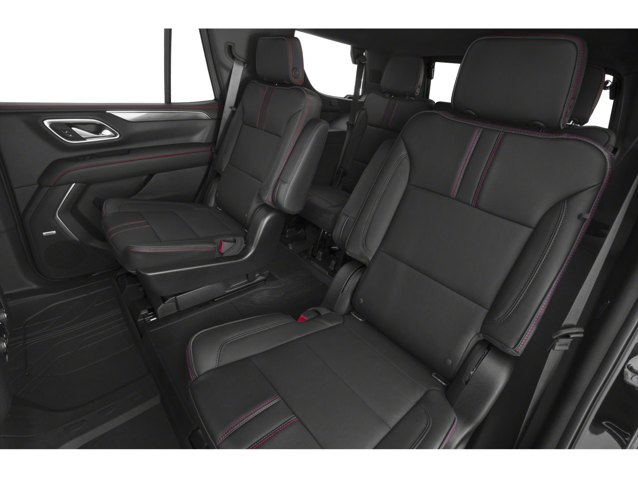Leather Seats, Third Row Seat, Navigation, 4x4, Power Liftgate, Rear Air, Heated Driver Seat, Cooled Driver Seat, Back-Up Camera, Running Boards, Premium Sound System, Satellite Radio, Onboard Communications System, Trailer Hitch, Aluminum Wheels Keyless Entry, Remote Trunk Release, Privacy Glass, Child Safety Locks, Steering Wheel Controls. Chevrolet RST with Dark Ash Metallic exterior and Jet Black/Victory Red interior features a 8 Cylinder Engine with 355 HP at 5600 RPM*.